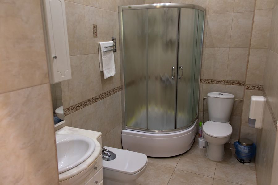 Сан/узел: душевая кабина, раковина, унитаз, фен, гигиенические принадлежности