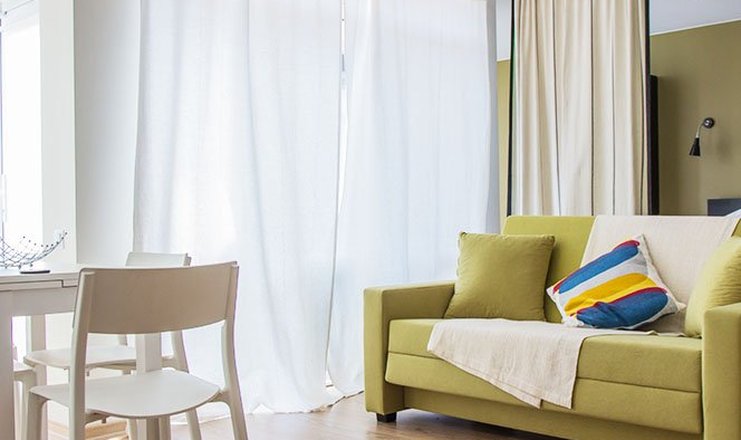 В номере: Кухня, вешалка, диван раскладной, зеркало, кровать 2-спальная, мягкая мебель, прикроватные тумбочки, стол, стулья, шкаф, кондиционер, микроволновка, мини-холодильник, набор посуды, плита электрическая, сейф, ТВ, телефон, чайный набор посуды, электрочайник