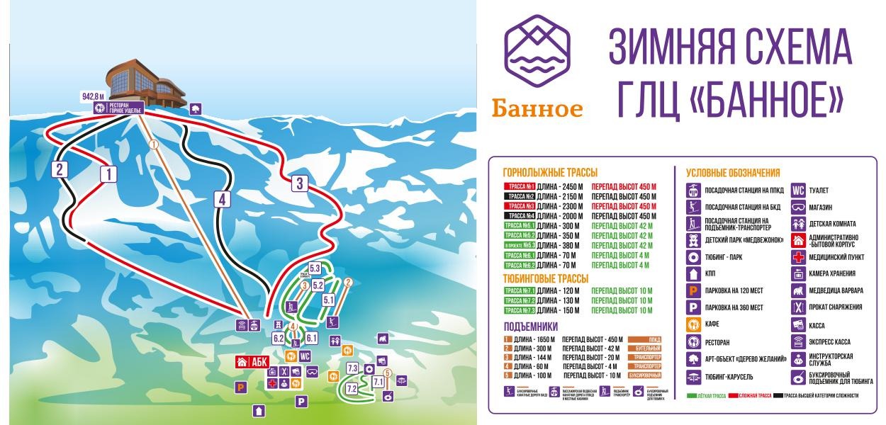 Горнолыжный центр «Банное» расположен всего в пяти минутах езды от нашего отеля. Это не просто курорт, это зимняя территория благополучия, комфорта, спортивного духа, здорового образа жизни, хорошего настроения и отдыха от рабочих будней.